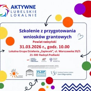 31 marca 2026 r. w biurze LGD „ZAPIECEK” w Radzyniu Podlaskim odbyło się otwarte szkolenie poświęcone zasadom przygotowywania wniosków w ramach inicjatywy „Aktywne Lubelskie Lokalnie 2026”.