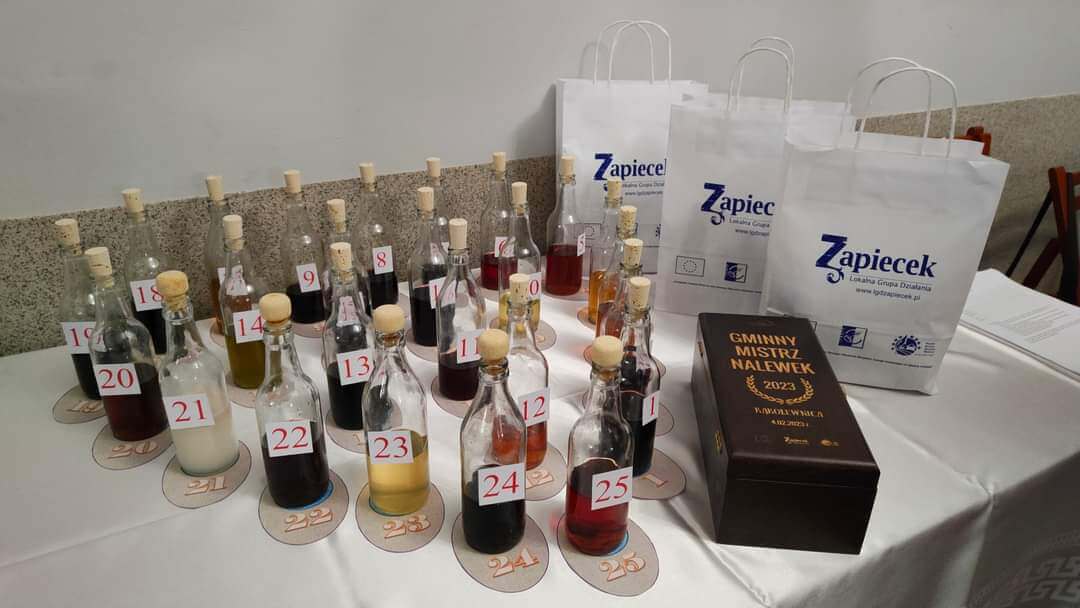 Cieszymy się, że piękna, głęboko osadzona w polskiej tradycji kulinarnej, tradycja przyrządzania nalewek rozwija się, że coraz więcej pań i panów latem zbiera owoce i zioła, żeby potem jesienią i zimą móc cieszyć się smakami i aromatami. Kiedyś miejsce ich przechowywania nazywano „apteczkami” bo dobra nalewka potrafi uleczyć nie tylko przeziębienie. W tym roku komisja musiała ocenić rekordową liczbę 25 produktów. Przewodniczący jury Zbyszek Smółko podkreślił, że z roku na rok poziom rośnie a wybrać najlepszą jest co raz trudniej. Ostatecznie kryształową karafkę z rąk Prezesa LGD „Zapiecek” Jarosław Koczkodaj odebrała pani Agata Chwedoruk z Lipniak, która przygotowała pyszną nalewkę truskawkową , drugie miejsce to bardzo aromatyczna malinówka od pani Lili Sójki z Brzozowicy Dużej, trzecie zaś jarzębinówka którą częstowała pani Małgorzata Boreczek z Polskowoli.