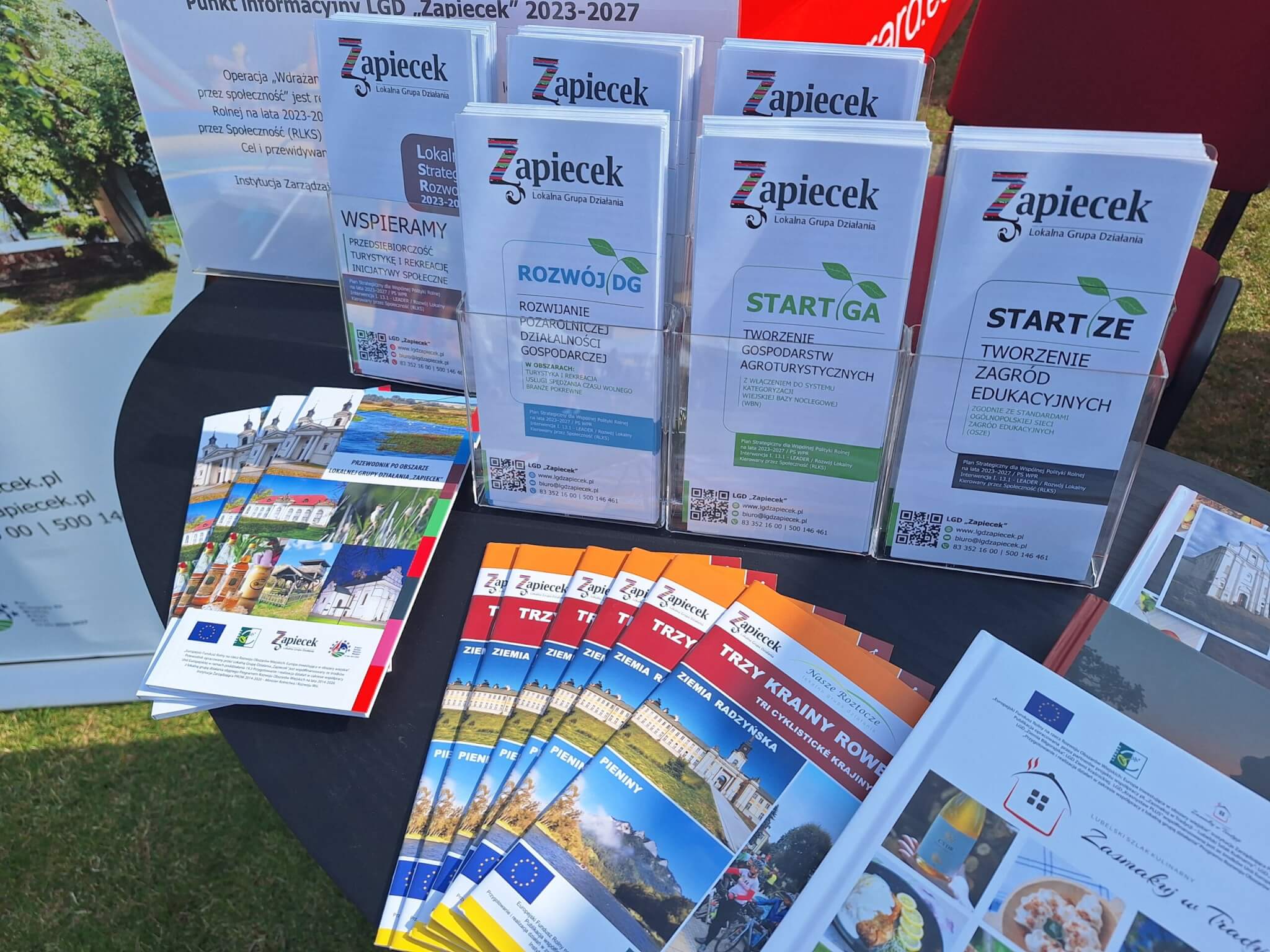 Przygotowaliśmy stoisko promocyjne, na którym można było nie tylko zapoznać się z publikacjami opracowanymi i wydanymi przez LGD „Zapiecek”, ale także dowiedzieć się, czym zajmujemy się na co dzień.