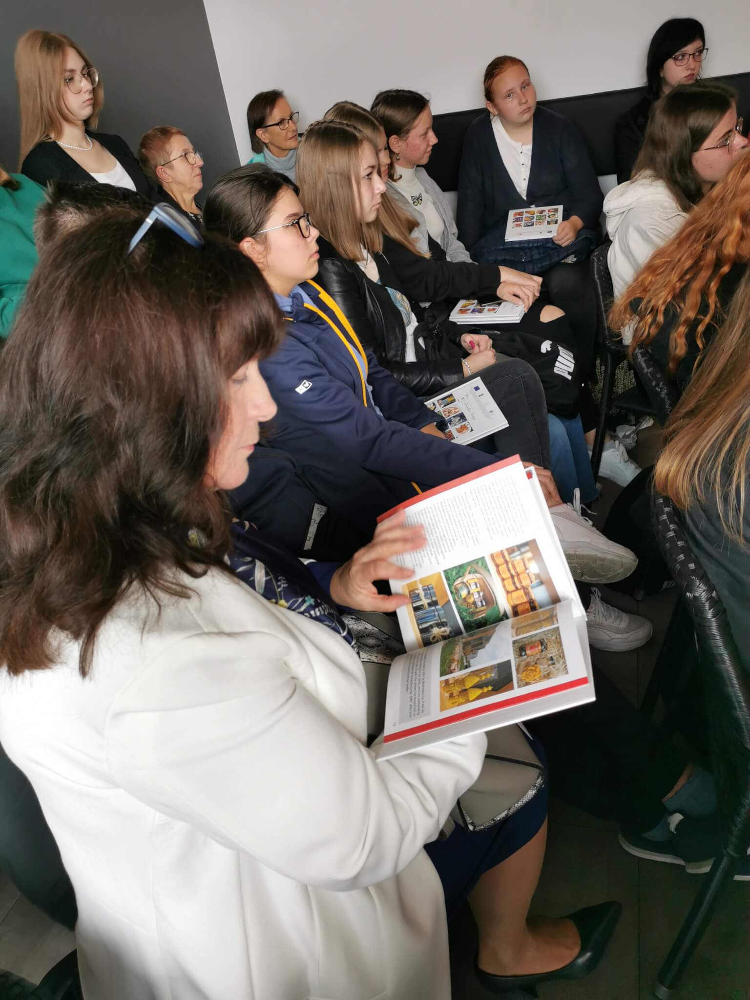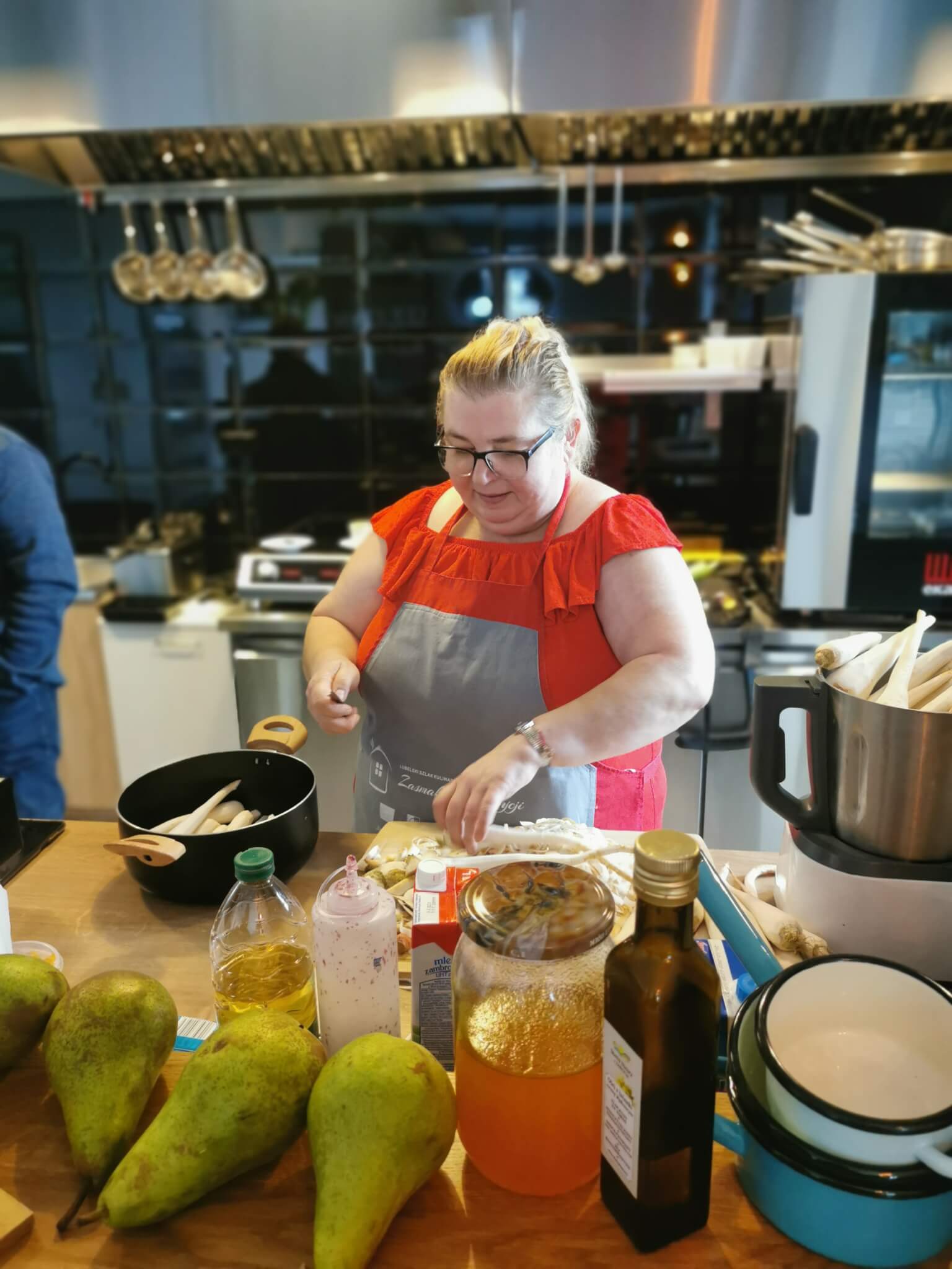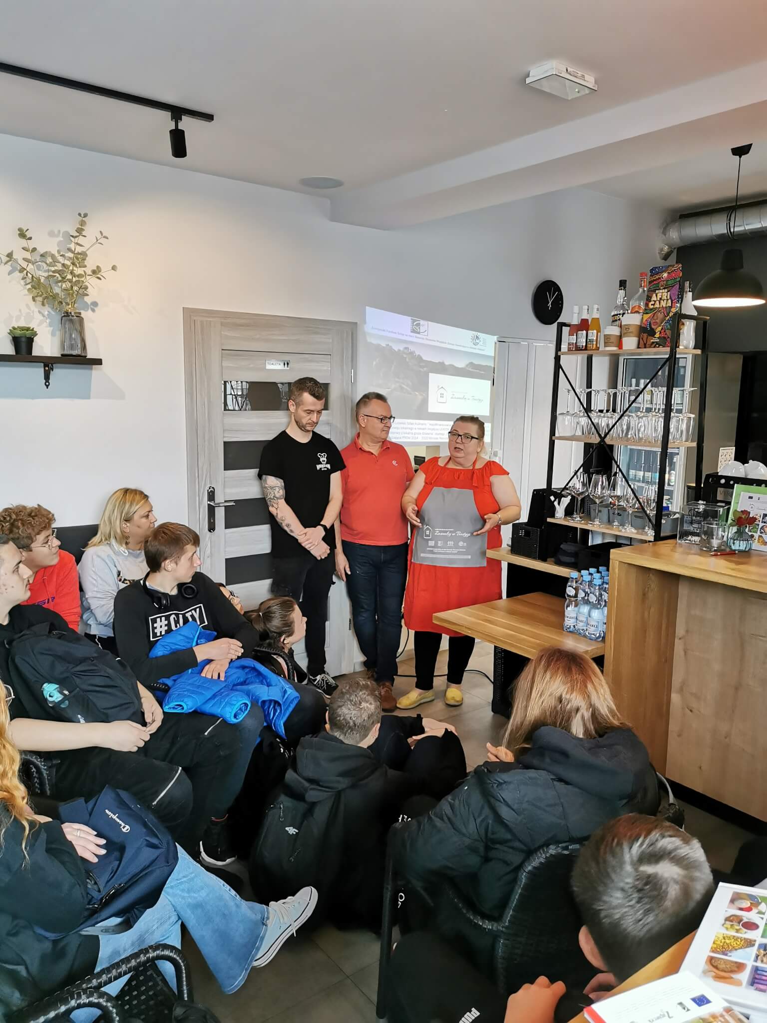 Miło nam było gościć na pokazach kulinarnych  młodych adeptów sztuki kulinarnej wraz z panią Małgorzatą Tokarską oraz Panią Agnieszką Śledź –  nauczycieli przedmiotów gastronomicznych w  ZSP . Było smacznie, ale i ciekawie. Pan Artur wraz z Panem Jerzym Wójcikiem opowiedzieli nam o tradycji i kuchni regionalnej, a Pani Ela Wójcik wyczarowała niesamowite potrawy z regionalnych produktów. Mieliśmy okazję odkryć nowe smaki poprzez degustacje przygotowanych dań tj. zupa krem z pietruszki, panacotta dyniowa, karmelizowana pietruszka. Dziękujemy za podzielenie się swoją pasją Państwu Elżbiecie i Jerzemu oraz Panu Arturowi za wspaniałą atmosferę.