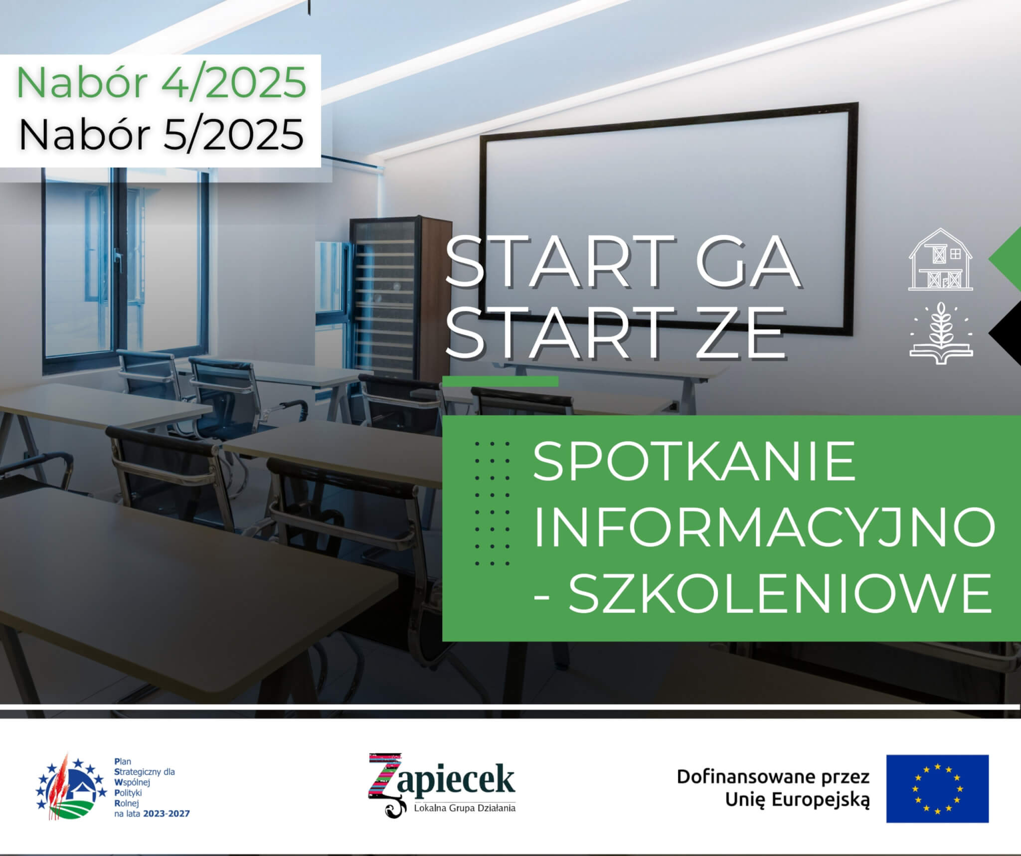 W związku ze zbliżającymi się naborami wniosków o dofinansowanie w zakresie pozarolniczych funkcji małych gospodarstw rolnych zapraszamy na spotkanie informacyjne rolników/małżonków rolników/domowników z małych gospodarstw rolnych obszaru LGD „Zapiecek” (do 11,42 ha), zainteresowanych uzyskaniem wsparcia na utworzenie gospodarstwa agroturystycznego (START GA) lub zagrody edukacyjnej (START ZE).