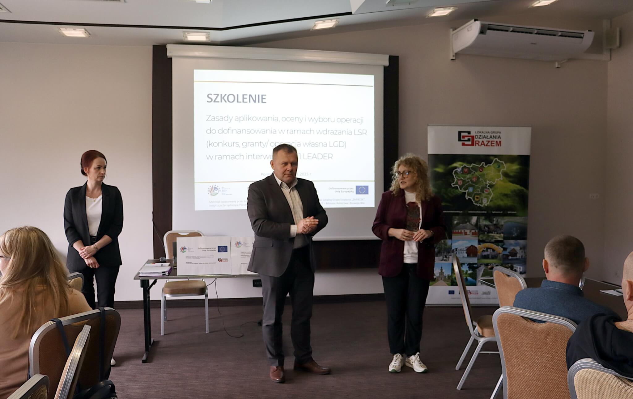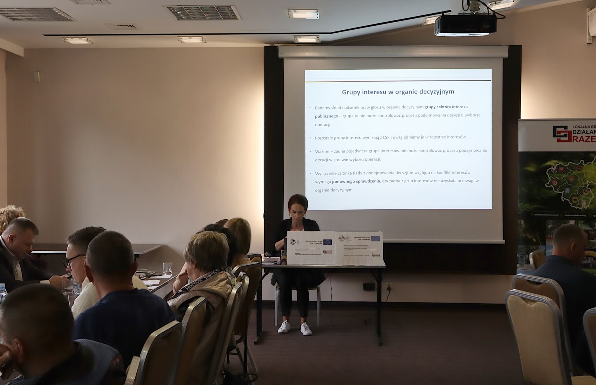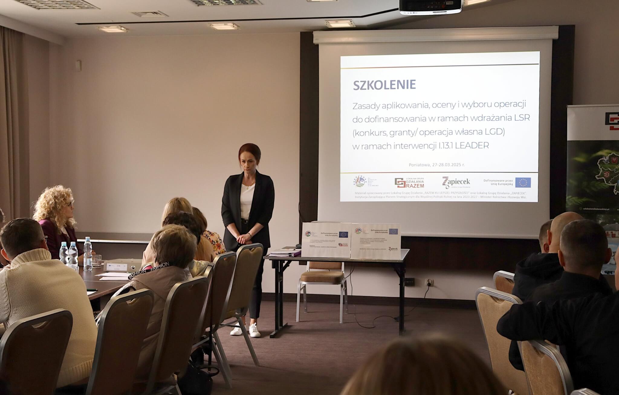 Tematem szkolenia były „Zasady aplikowania, oceny i wyboru operacji do dofinansowania w ramach wdrażania LSR (konkurs, granty/operacja własna LGD) w ramach interwencji I.13.1 LEADER”.